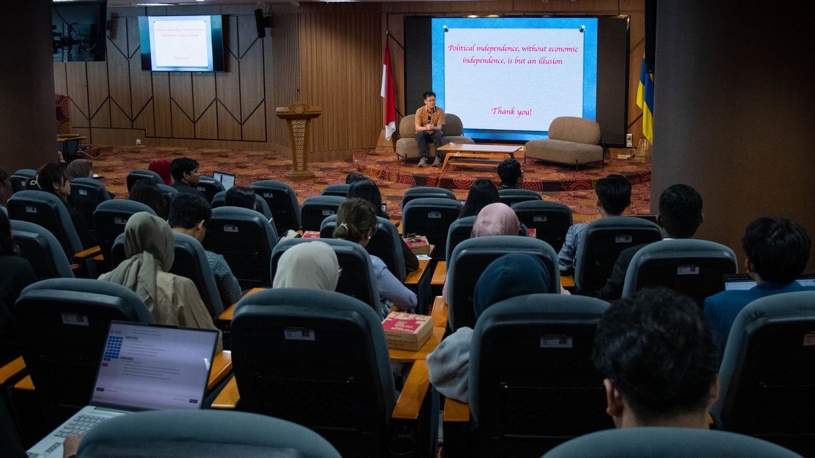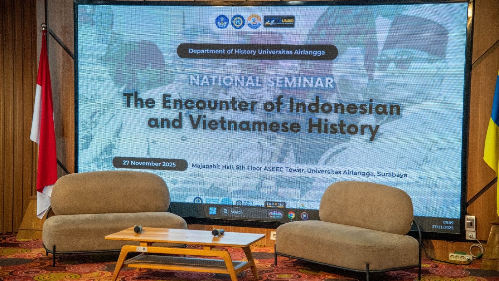 Trong khuôn khổ chương trình, sinh viên tham dự toạ đàm khoa học “Sự gặp gỡ giữa lịch sử Việt Nam và Indonesia”, tham gia các bài giảng chuyên đề và trao đổi học thuật với giảng viên Đại học Airlangga. Các tham luận khẳng định nhiều điểm tương đồng về lịch sử, văn hoá và triển vọng hợp tác giữa hai quốc gia; sinh viên được đánh giá cao về sự tự tin và năng lực chuyên môn.